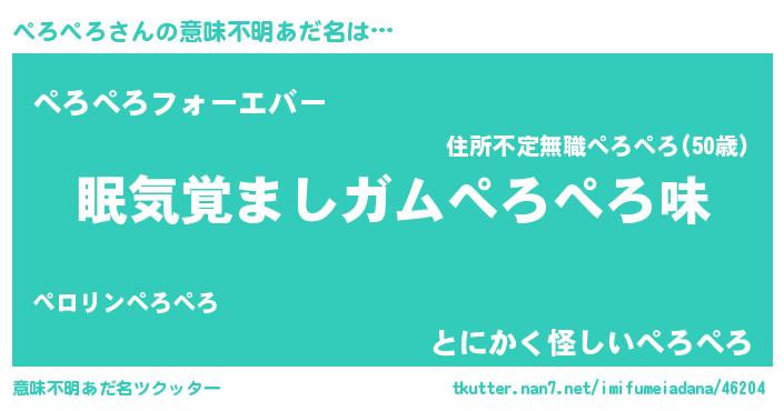 | 欧米人風あだ名 | 『アンジェラ・ぺろぺろ』 |