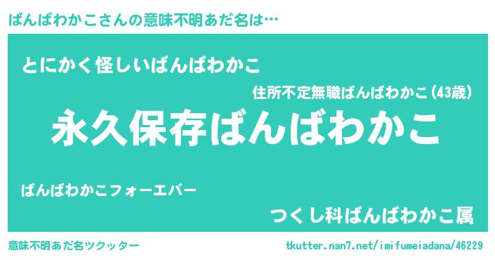 | 胡散臭い通販商品みたいなあだ名 | 『来世でも幸せになれる健康食品…その名も「ばんばわかこ」』 |