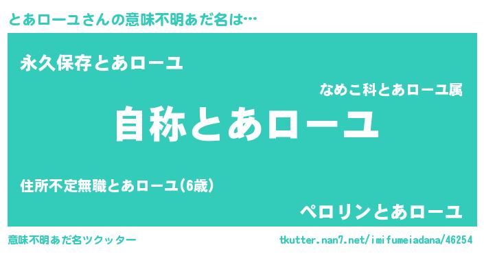 | 女子向けラノベタイトル風あだ名 | 『とあローユアンティーク』 |