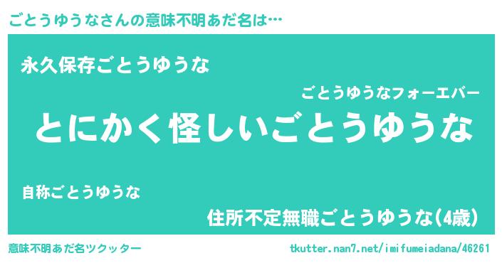 | ヘコむあだ名 | 『ごとっちょ』『ごとうゆうな(小並感)』 |