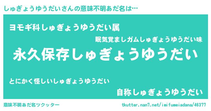 | ヘコむあだ名 | 『しゅぎょうゆうだい(笑)』『しゅっぺ』 |