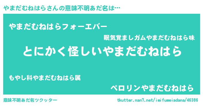 | 女子向けラノベタイトル風あだ名 | 『やまだむねはらは平凡を望む』 |