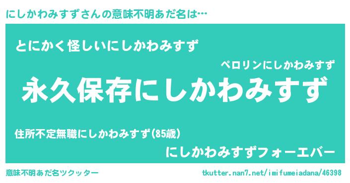 | 胡散臭い通販商品みたいなあだ名 | 『絶対に幸福をもたらす健康食品…その名も「にしかわみすず」』 |