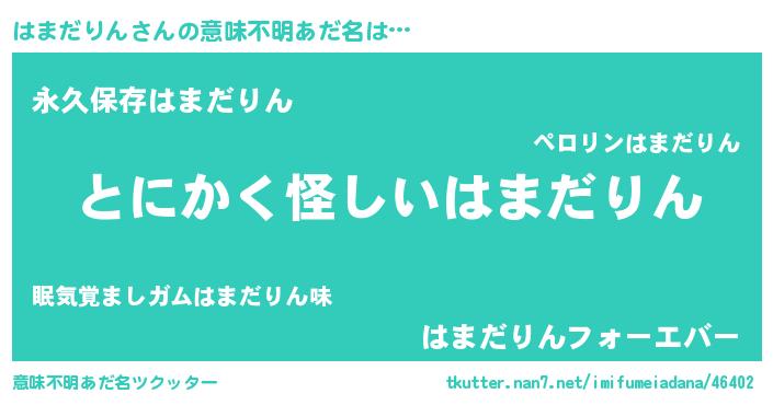 | ポケモン風あだ名 | 『ヒハマダリン』『ゼニハマ』 |