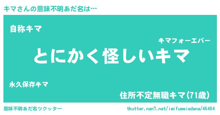 | 男性向けラノベタイトル風あだ名 | 『キマの嫁は女の子じゃないと思った?』 |