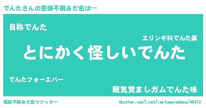 | 欧米人風あだ名 | 『アンジェラ・でんた』『ウサインでんた』 |