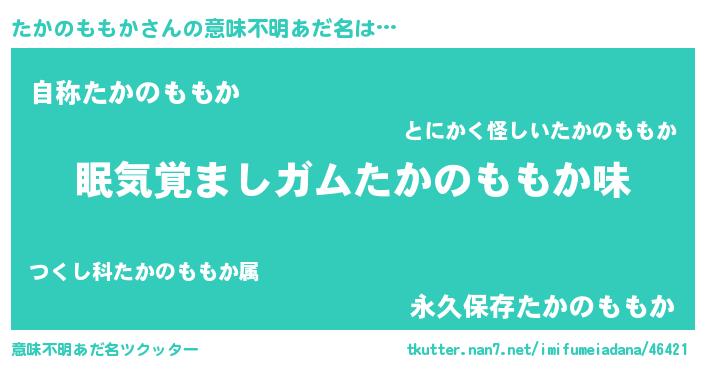 | 肩書あだ名 | 『たかのももか助手』『たかのももか総統』 |