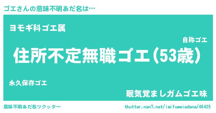 | ヘコむあだ名 | 『ゴエ(爆)』『ゴエお』『なまこ酢』 |