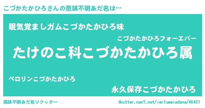 | 男性向けラノベタイトル風あだ名 | 『転生したらこづかたかひろだった件』 |