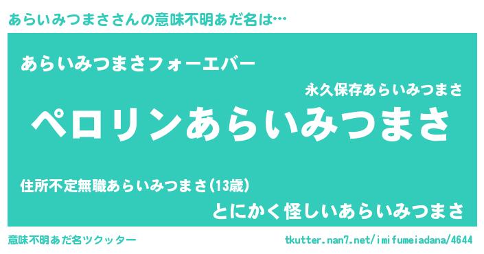 | ヒーロー風カッコイイあだ名 | 『スーパーアライミツマサ』 |