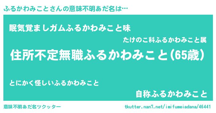 | 女子向けラノベタイトル風あだ名 | 『悪役ふるかわみことに転生したようですが、知った事ではありません』 |