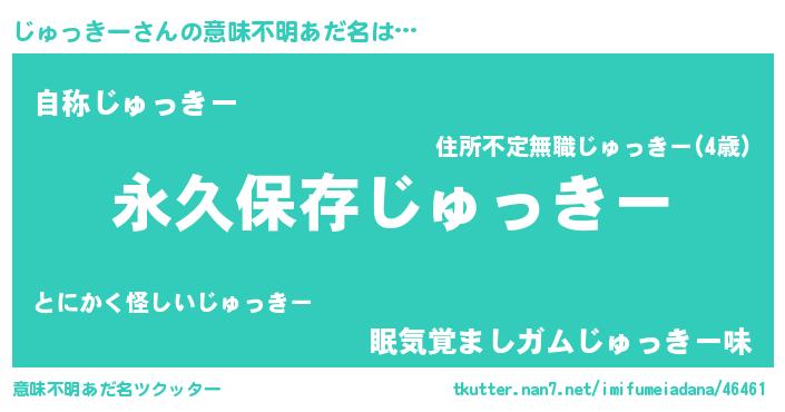 | 胡散臭い通販商品みたいなあだ名 | 『絶対に幸福をもたらす健康食品…その名も「じゅっきー」』 |