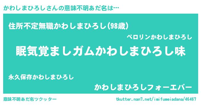 | 胡散臭い通販商品みたいなあだ名 | 『100人中100人が認めたイリジウム磁石…その名も「かわしまひろし」』 |