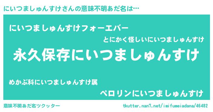 | 欧米人風あだ名 | 『にいつましゅんすけ・ステッグマイヤー』 |