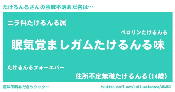 | 男性向けラノベタイトル風あだ名 | 『おまえをオタクにしてやるから、俺をたけるんるにしてくれ! 』 |