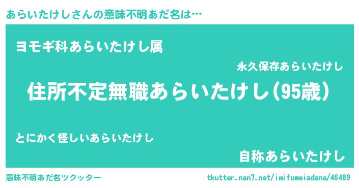 | 伝説のあだ名 | 『古文書に記された勇者あらいたけし』 |