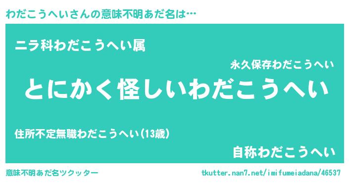 | 女子向けラノベタイトル風あだ名 | 『わだこうへいの卵を拾いまして』 |