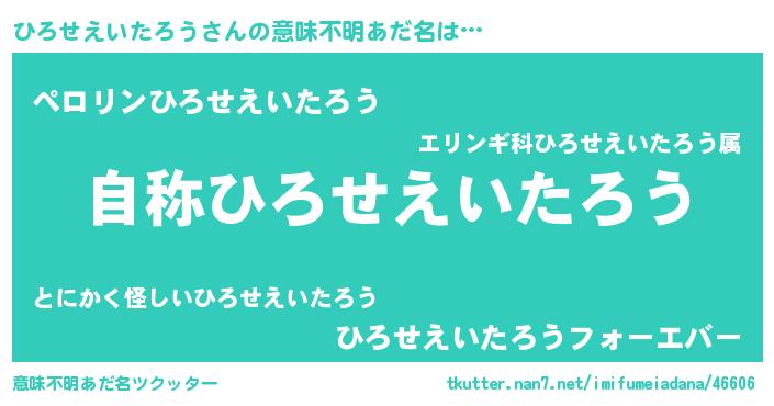 | 男性向けラノベタイトル風あだ名 | 『Re:ひろせえいたろうから始める異世界生活』 |