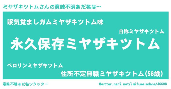 | ヒーロー風カッコイイあだ名 | 『ネオミヤザキツトム』『仮面ミヤダー』 |