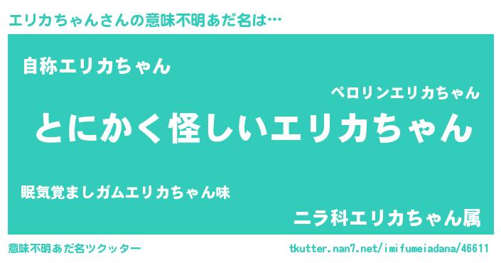 | 欧米人風あだ名 | 『ウサインエリカちゃん』 |