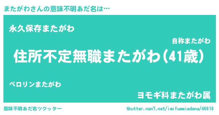 | ヘコむあだ名 | 『またがわ(笑)』『またにゅー』 |
