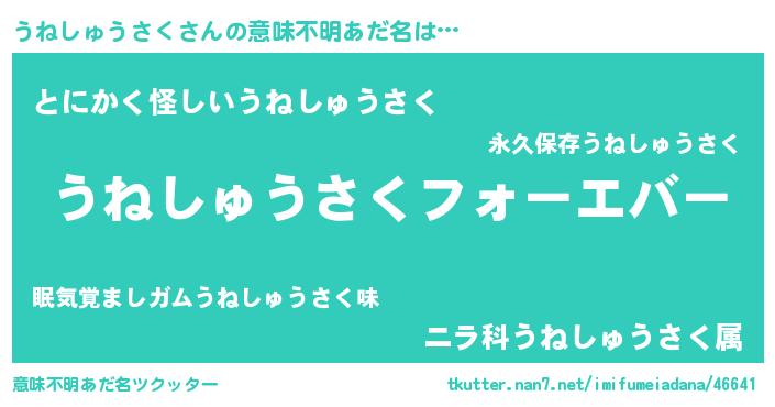 | 女子向けラノベタイトル風あだ名 | 『うねしゅうさくの雑貨屋さん』 |