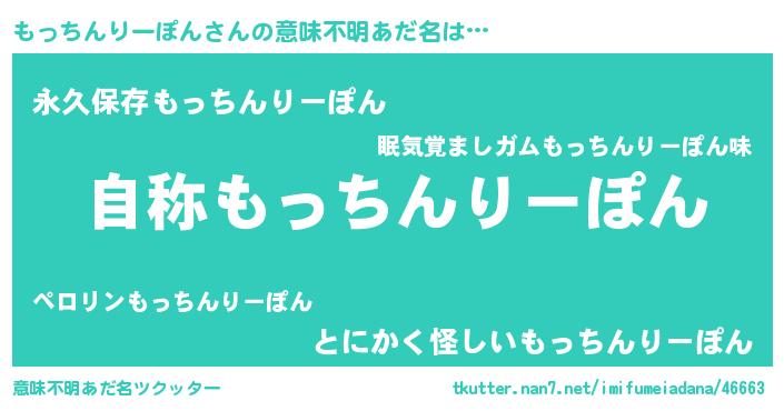 | 欧米人風あだ名 | 『アンジェラ・もっちんりーぽん』 |