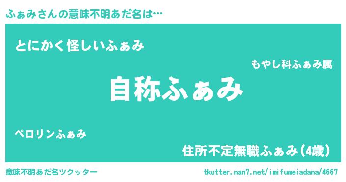 | 女子向けラノベタイトル風あだ名 | 『ふぁみなんてお断りですっ。』 |
