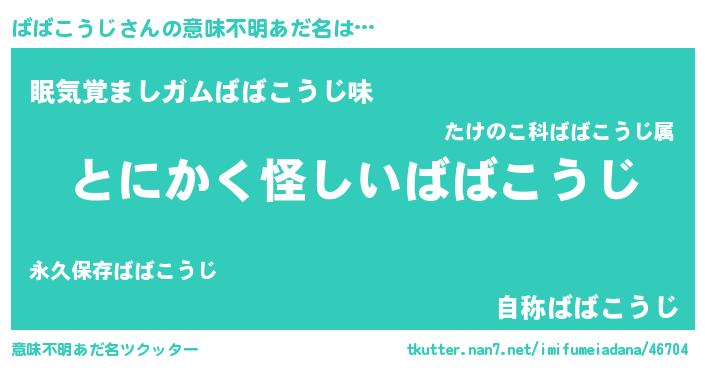 | 胡散臭い通販商品みたいなあだ名 | 『信頼と実績のサプリメント…その名も「ばばこうじ」』 |