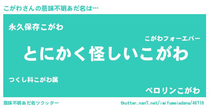 | ヘコむあだ名 | 『こがを』『こがわ(小並感)』 |