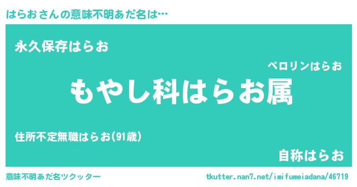 | ヘコむあだ名 | 『はらお(笑)』『はらもー』 |