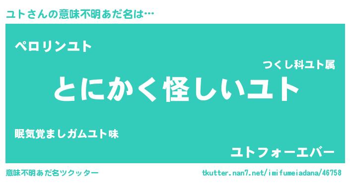 | ポケモン風あだ名 | 『ヒユト』『ユトチュウ』『ユトダネ』 |