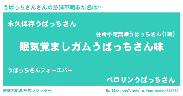 | ヘコむあだ名 | 『うばっちさん(小並感)』『うばもー』 |