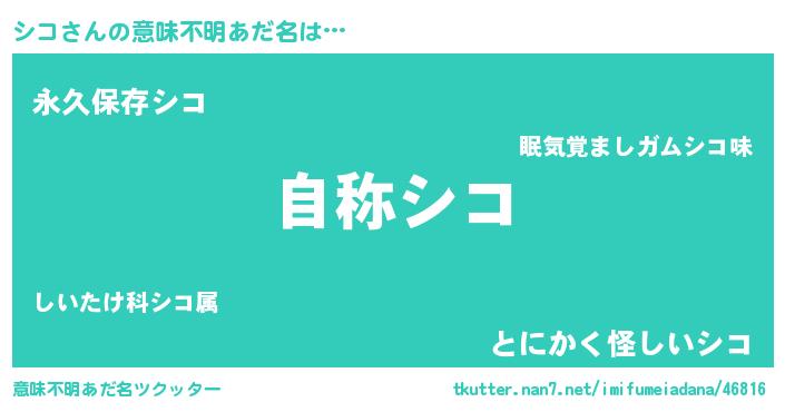 | 女子向けラノベタイトル風あだ名 | 『シコアンティーク』『シコは平凡を望む』 |
