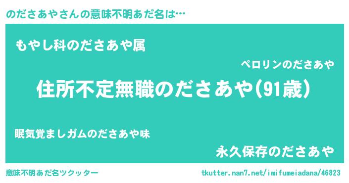| 男性向けラノベタイトル風あだ名 | 『この素晴らしい世界にのださあやを!』 |