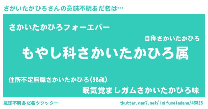 | 男性向けラノベタイトル風あだ名 | 『さかいたかひろに滅ぼされるだけの簡単なお仕事です』 |