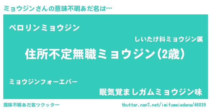 | ヒーロー風カッコイイあだ名 | 『仮面ミョダー』『スーパーミョウジン』 |