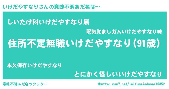 | ヘコむあだ名 | 『いけぷりん』『いけだやすなり(笑)』 |