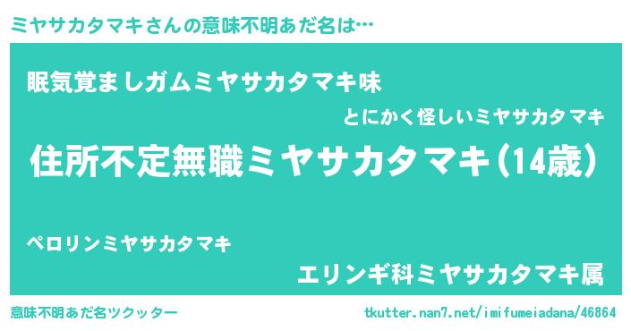 | ヒーロー風カッコイイあだ名 | 『仮面ミヤダー』『暗黒騎士ミヤ』 |