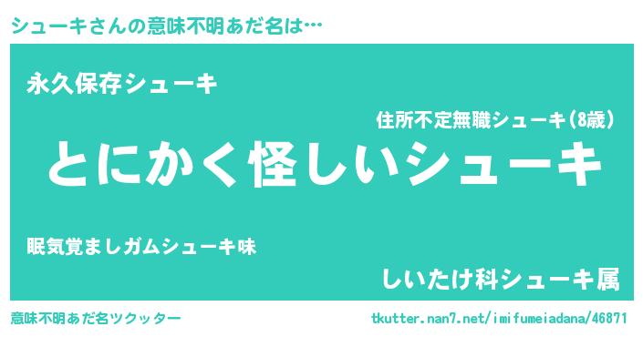 | 胡散臭い通販商品みたいなあだ名 | 『伝統あるサプリメント…その名も「シューキ」』 |