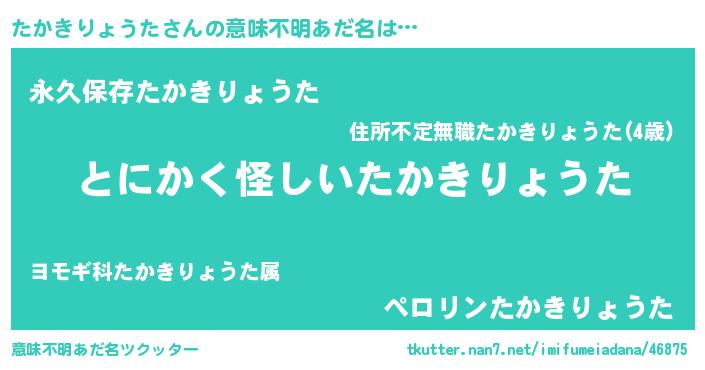 | 女子向けラノベタイトル風あだ名 | 『たかきりょうたの卵を拾いまして』 |