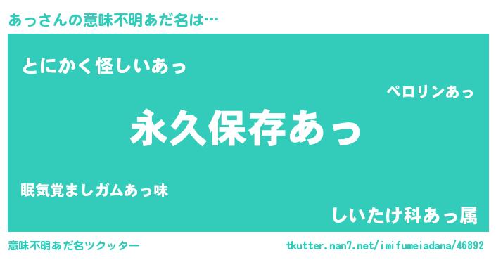 | 胡散臭い通販商品みたいなあだ名 | 『絶対に幸福をもたらす健康食品…その名も「あっ」』 |