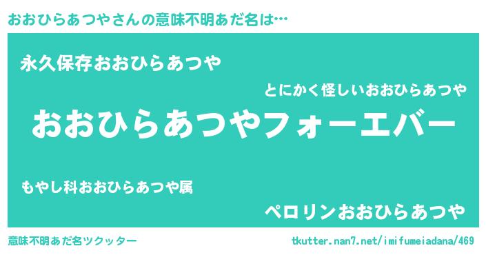 | ファンタジー風あだ名 | 『エターナルオオヒラアツヤー』 |