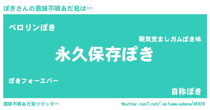 | 男性向けラノベタイトル風あだ名 | 『ぽきという概念が存在しない退屈な世界 』 |