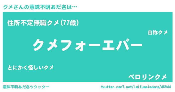 | ポケモン風あだ名 | 『クメダネ』『クーメイ』『クメゴンZ』 |