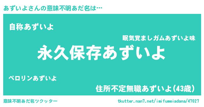 | 伝説のあだ名 | 『古より伝わる勇者あずいよ』 |