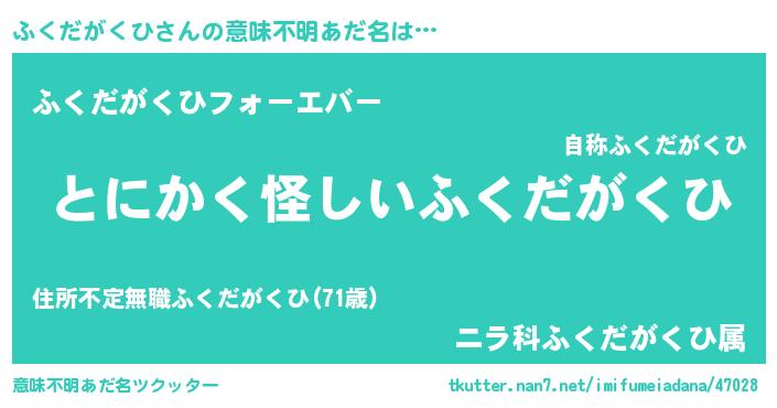 | ポケモン風あだ名 | 『ヒフクダガクヒ』『フクダダネ』 |