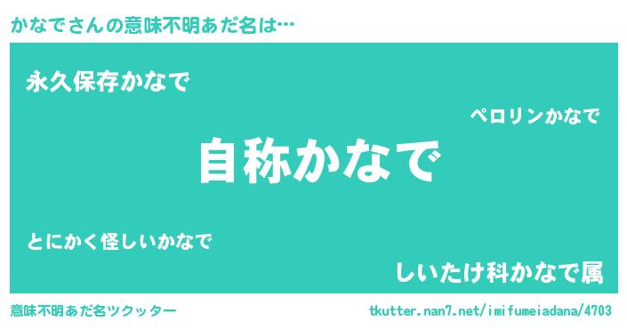 | 女子向けラノベタイトル風あだ名 | 『かなでストレイドッグス』 |