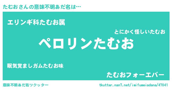 | ヒーロー風カッコイイあだ名 | 『スーパータムオ』『ウルトラたむおマン』 |