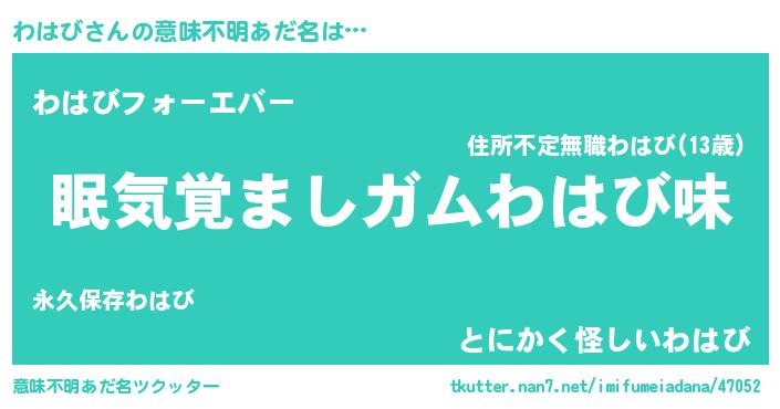 | ヒーロー風カッコイイあだ名 | 『天空の使者わはび』『魔戒騎士ワハ』 |
